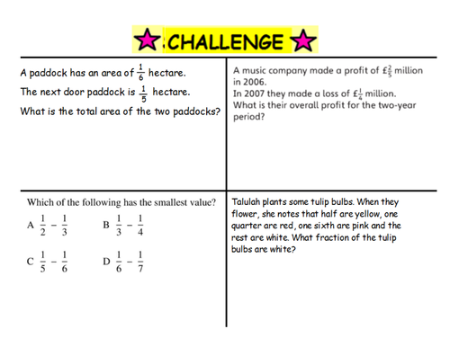 Includes common denominators different denominators mixed numbers and worded problems. 2 ¼ 5 ½ 3 ¾ 9 ⅔ 6 ⅓. Im in my first year of Teach First and Im not a Maths specialist so any constructive feedback would be welcome.